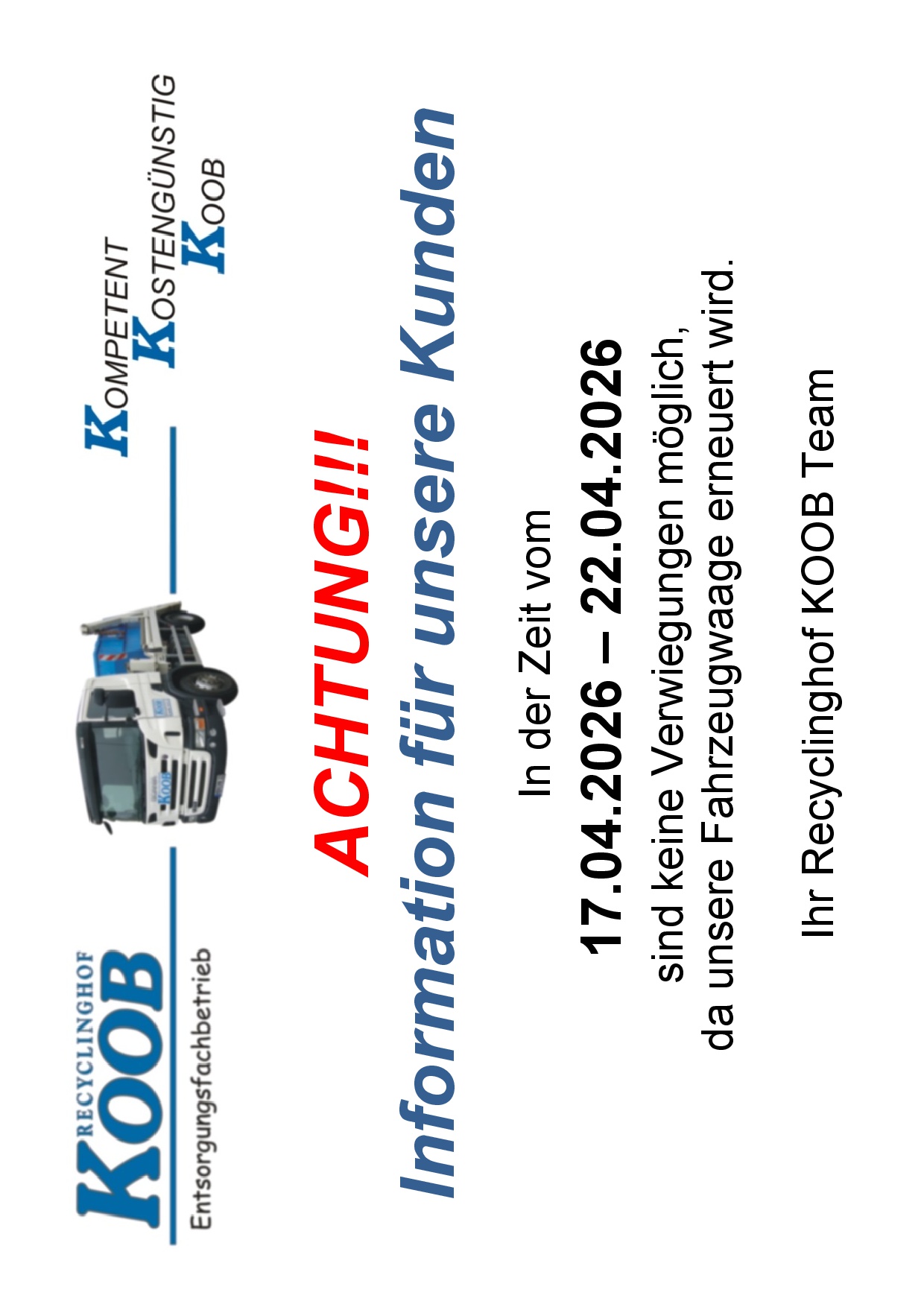 Ausnahme: Annahme nur über den Wertstoffhof und nur durch Privat-personen (siehe Öffnungszeiten)